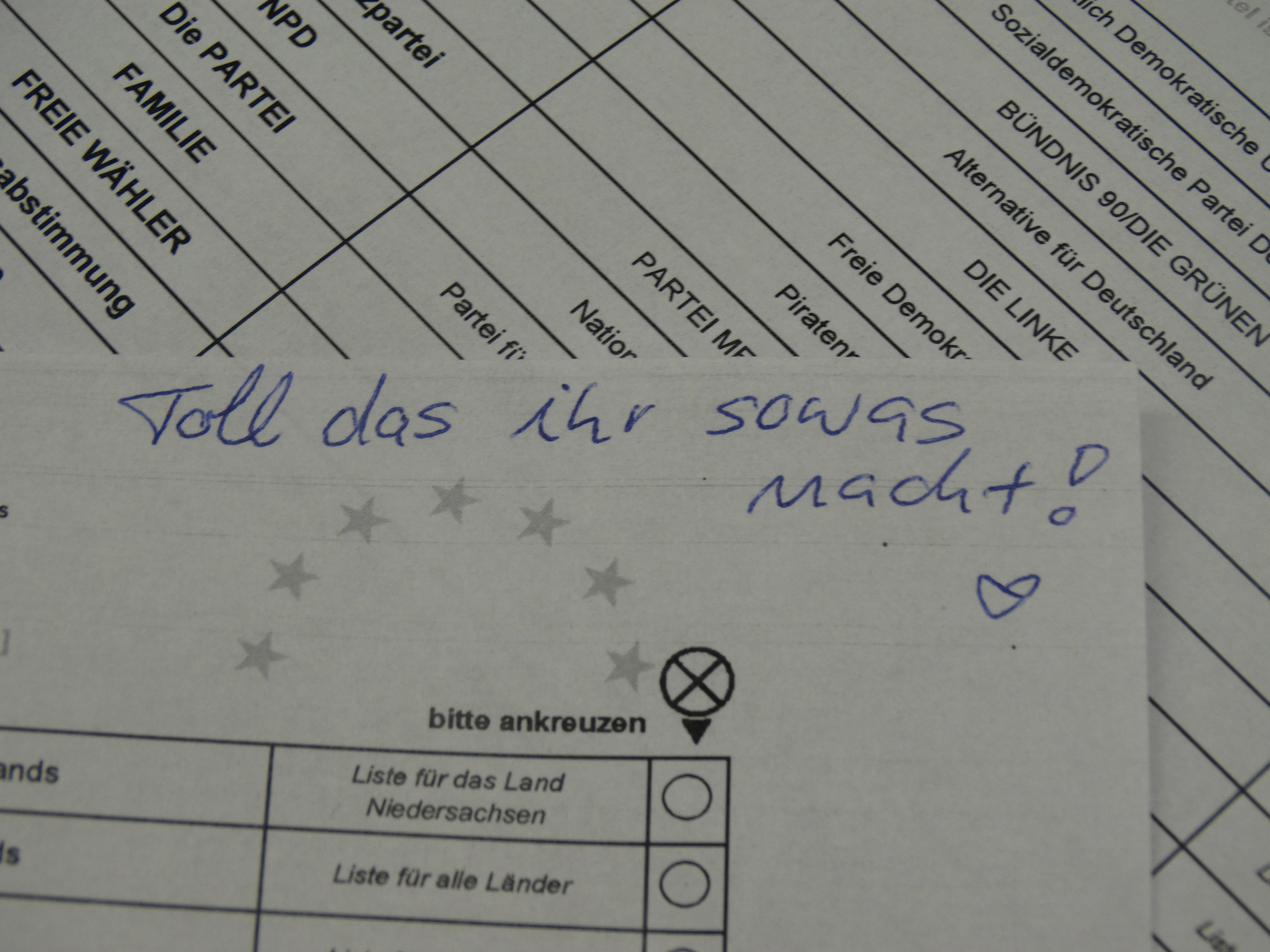 Wir bedanken uns herzlich für Eure Stimmabgabe zur U18-Europawahl und somit auch für die Unterstützung dieser Aktion, deren Ergebnis hoffentlich auch in Berlin und Brüssel Beachtung finden wird. Eine besonders nette Botschaft erreichte uns bei der Stimmzettelauszählung: „Toll, dass ihr sowas macht!“ Das spornt uns an und zur nächsten Wahl werden wir in jedem Fall wieder auf Eure Stimme zählen!